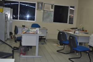 No total, três salas foram alvos dos bandidos, que entraram por um galpão anexo ao departamento e tiveram acesso às salas. O local onde ficam guardados produtos recolhidos pela fiscalização estadual foi revirada e documentos em papel ficaram espalhados pelo local. “Os ladrões arrombaram o galpão vizinho à Companhia, serrando cadeados. Nesse galpão tem uma laje sobreposta que dá acesso à secretaria”, informa o tenente José Almir, responsável pelo Comando do Batalhão de Polícia de Guarda. Ainda segundo o militar, essa não é a primeira vez que ocorrem arrombamentos desse tipo no local.
